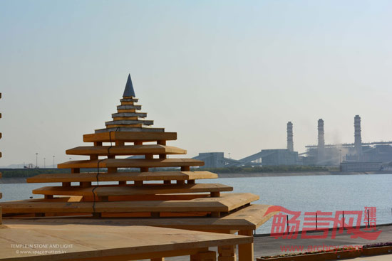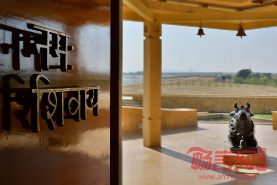 这座庙宇是为显婆神而建,在印度经文和神话记载中,显婆神是守卫者和毁灭者的双重化身。庙宇采用重型石头作为材料,而建造形式又较为轻巧,当夜幕降临,石材外观隐去,而灯光下整座庙宇又化身为沙丘中的一盏灯笼。白天,外部光线照进庙宇,而到了夜晚,庙宇内的光线又从里向外透射出来,仿佛是在发出一种邀请。