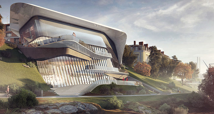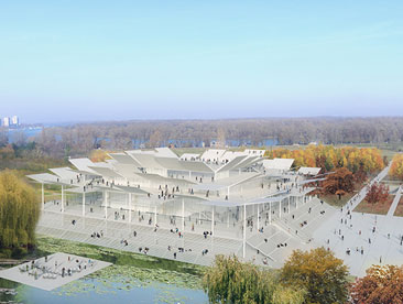 Metroscapes工作室设计了贝尔格莱德市立美术馆。这一方案拥有弧形白色外墙、阶梯式露台,背山而建。美术馆俯瞰多瑙河和Sava河汇合处,享有老城区一处最为重要的景观。在入口处,轻质天棚结构引导访客进入下沉式门厅,这块空间包含咖啡厅和餐厅,通往美术馆最尊贵的空间,即主阳台。