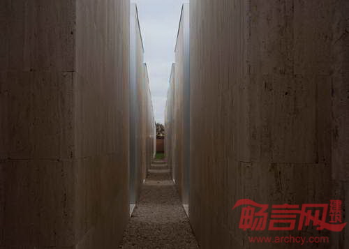意大利建筑师Andrea Dragoni在意大利古镇上设计了一个新公墓。设计师设计了若干纪念性石灰华墙壁,中间是公共广场和艺术品。公墓位于亚平宁山脉的Ingino山脚下的Gubbio镇。高耸的石墙次第排列,设计师参考了呈带状分布的小镇以及周边景观。设计师表示,“项目虚实对比回复了中世纪小镇的韵律。和我其他项目一样,设计中的‘虚’具有关键作用。这种留白使得建筑具有震撼的诗意,使人们产生精神共鸣。”