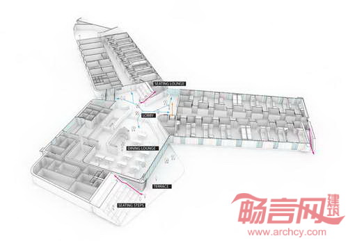 LAVA国际建筑事务所设计的德国拜罗伊特青年旅舍基于功能和代表性目的。建筑具有Y型结构,体现了Y世代旅行者的态度,旨在创造“时髦的设计、特殊的个性”,配备上网条件,提供社区体验,而不仅仅是干净的床铺和洗浴设备。设计方案围绕醒目的中庭而设,具有清晰的结构布局,内部以及同户外体育场和花园拥有良好的连接性。项目共有180个床位,目前处于设计开发阶段,预计将于2015年初完工。