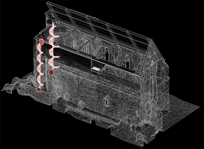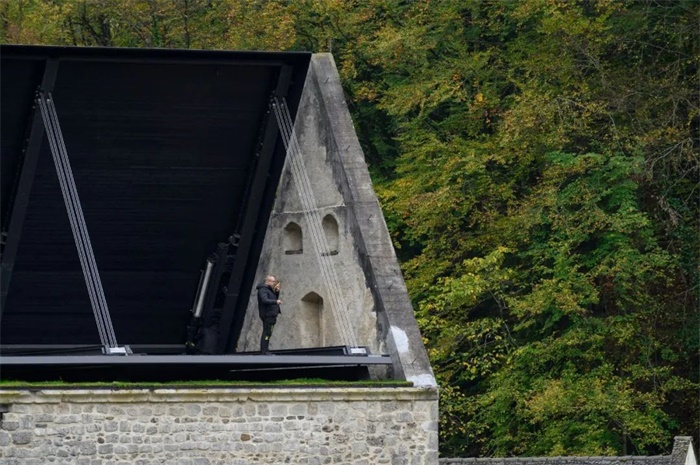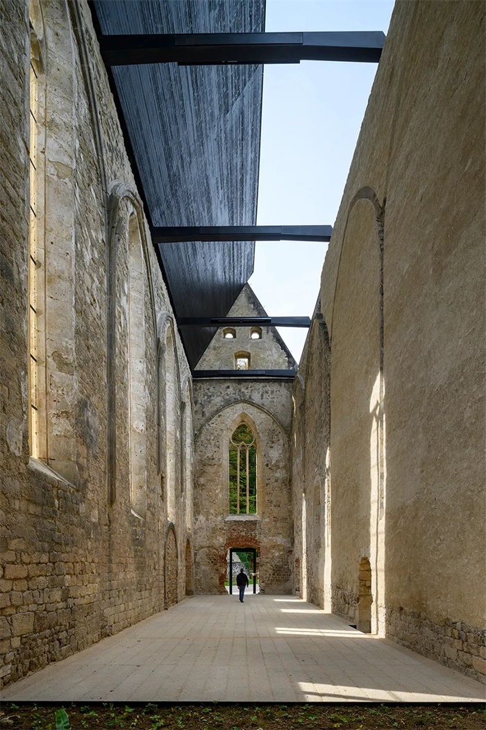 翻新工程的最大亮点是可移动折叠屋顶,它在项目中占有特殊的重要地位。它是一种粗糙的高科技设施,是一台真正的技术“机器”,是一种特殊的建筑工具,旨在保留一种明显的非技术、实际上非物质的效果--教堂主殿上方开阔的天空。这种极为实用的现代解决方案也是为了保留开阔天空的微妙氛围,这也是该建筑项目中极为有趣的物质、技术和机械解决方案。
