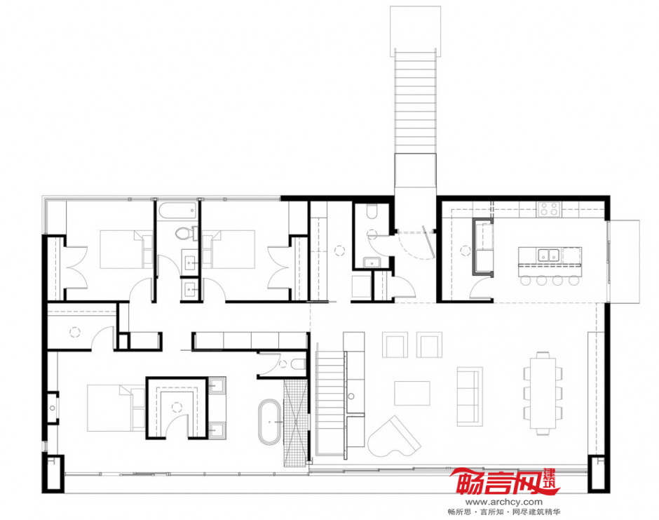 设计主旨是使住户享用峡谷的壮丽视野,并尽量多地创造出室内外的家庭聚会和休闲空间。