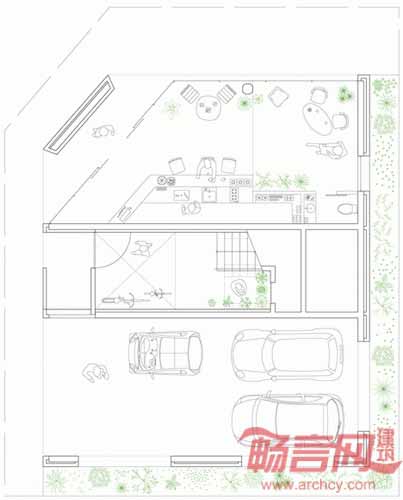 建筑师表示,“与外观形式不同,项目实质上是有两栋建筑物构成,连接它们的是一个位于独特砖墙屏障后方的半室外楼梯,最终构成H型方案。”二至五层区域包含了四种类型、共14套住宅,从楼梯平台可以直接进入这些住宅。砖石屏障使得每套公寓拥有三个方向的自然通风。屏障的图案延伸至屋面,覆盖了若干公寓的窗户,从而提升了公寓的私密性。