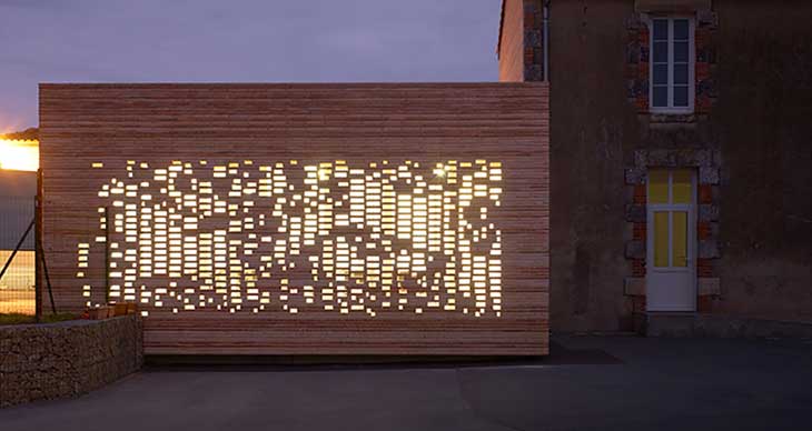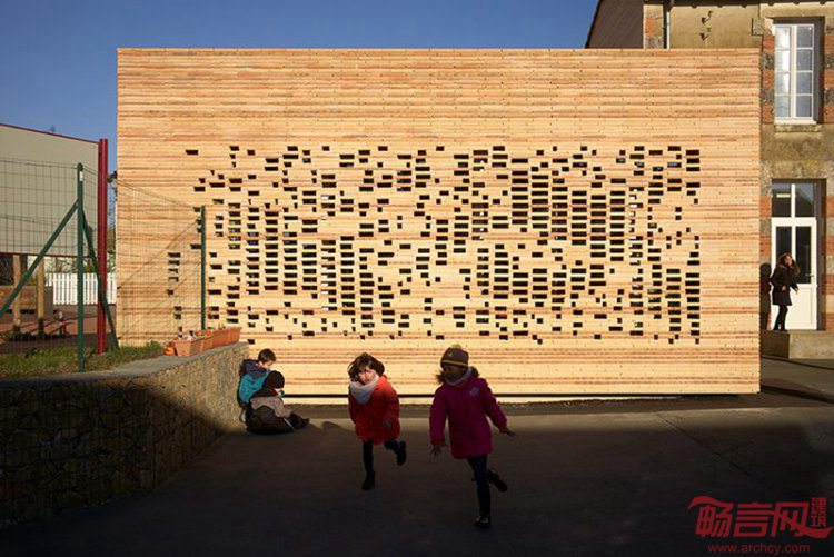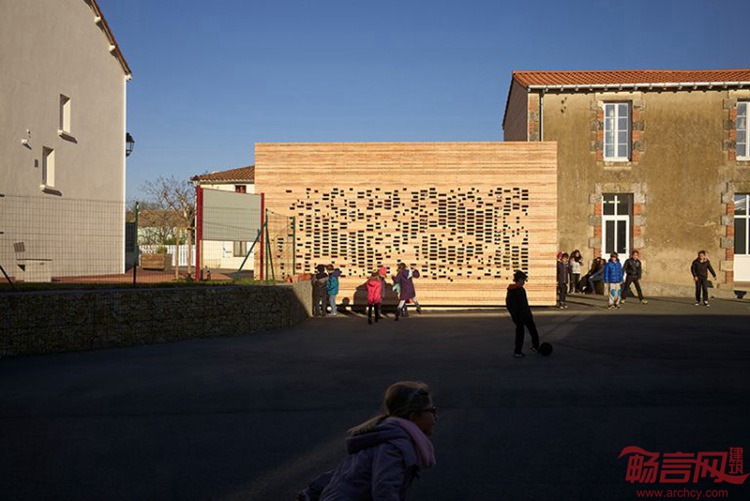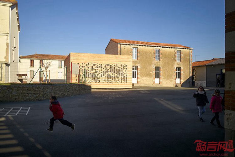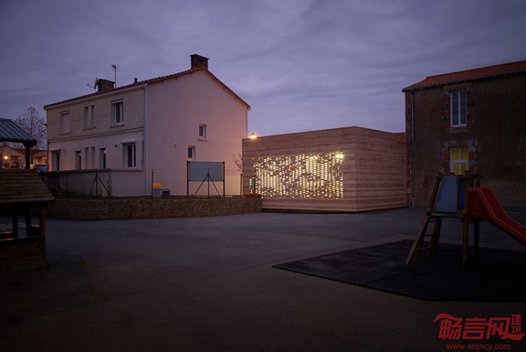 项目位于法国西部的Chaille Sous Les Ormeaux,是市政厅建筑扩建工程。新增部分呈现出白色,材料采用当地生产的砖砌块。穿孔造型营造出个性而微妙的细部构造,白天让光线照到室内,夜晚也让灯光透过建筑。项目由南特Titan工作室完成,采用的是简洁的结构模块,保留了城市特性。尺度和元素的精炼都有特别考虑,并同语境建立了联系,这些都反映在最终方案中。