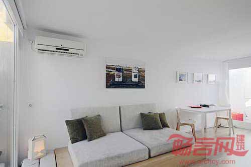 在每个模块面积为12平米的室内空间,家具选择遵循了舒适原则,满足了基本需要,体现了“少即是多”理念。譬如沙发垫在掀起后,座位下方是存储空间。为了营造起居室和厨房间的分隔,设计师采用了一个玻璃门,提供了室内过道功能。