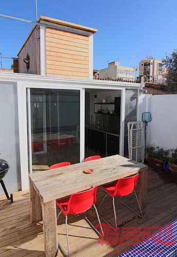 西班牙ESPAI FLY建筑事务所在马略卡岛上建造了一栋用集装箱改造的小旅馆。建筑位于Palma市的一片低矮住宅区中,由三个集装箱模块组成。项目采用了场外预制法,施工过程几乎没有浪费材料或消耗太多电量。项目宽度是4.5米,建造在桩基础之上,并运用承重墙支撑建筑结构。完成预制工程后,借助卡车和起重机,项目安装过程相当迅速,产生灰尘和噪音也比传统施工小得多。低成本项目将来很容易被推广,能够满足业主的主要要求:房屋移动性。