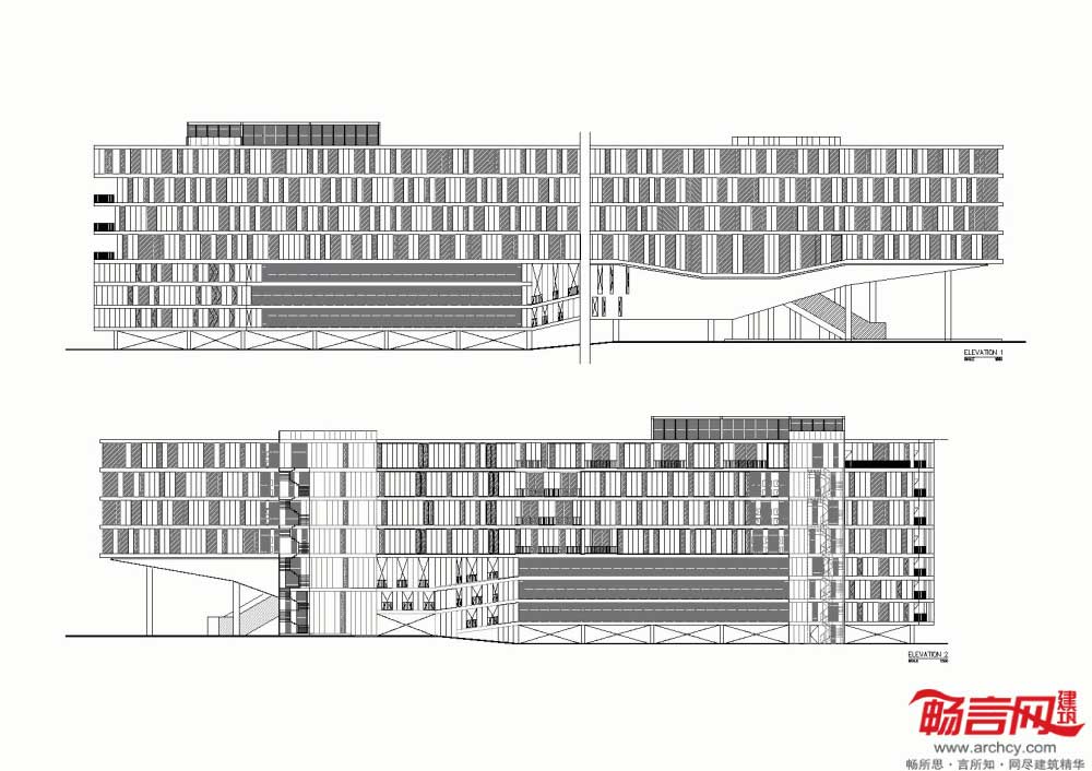 外围立面概念来自MDF图片以及刨花板生产流程。设计师将细小的材料拼接起来,组成一个生动而实用的表面。