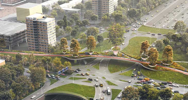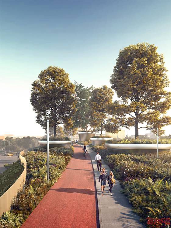 本项目对原有的乡村道路增加了独特的基础设施,Paul de Ruiter事务所同CULD合作完成了“树之桥”方案。项目位于荷兰阿姆斯特丹郊外的一个小镇,经当地居民投票,该方案成功中标。这是一个200米长的自行车桥梁,将成为A9道路的环境友好型增建设施,成为当地的一大地标。