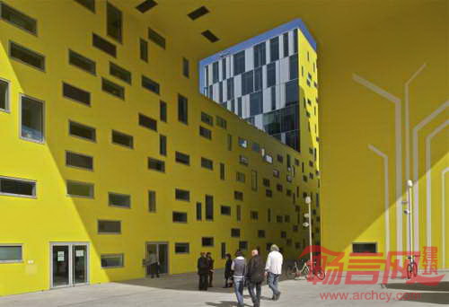 设计理念是建造出于周边街道相联系的连续系统。线性建筑建构贴近地表,形成低矮、已接近的建筑,提供了开敞的庭院和突出的悬吊结构。