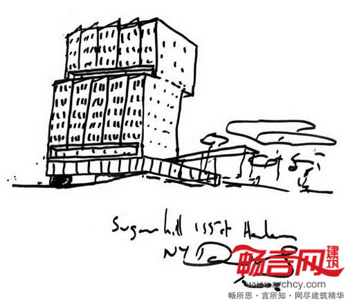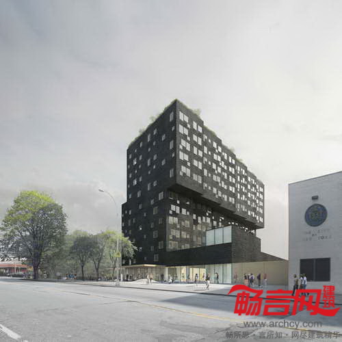Sugar Hill居住综合体包含玻璃和水磨石底座以及深色石材主体建筑。项目预计于2013年底建成,将涵盖124套经济适用公寓、可供100名学前儿童就学的早教中心、儿童艺术馆。设计方同客户、百老汇居住社区(BHC)以及当地社区紧密合作,保证设计符合历史、实用和美学要求,并使周围哥特风格排屋环境锦上添花。
