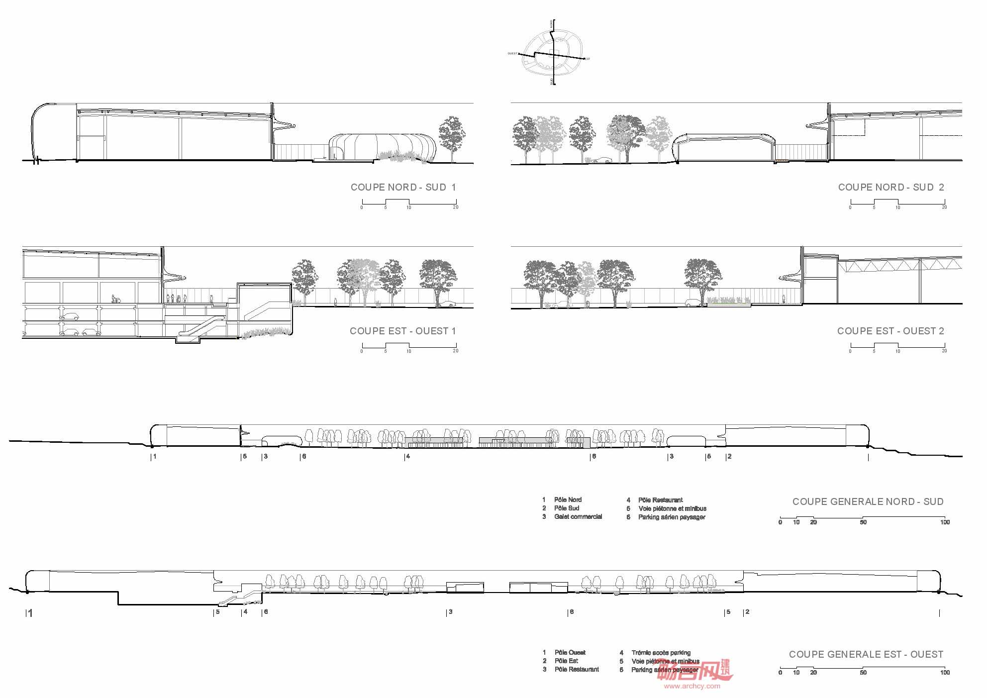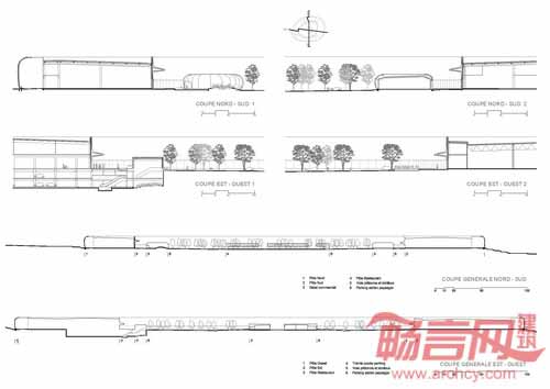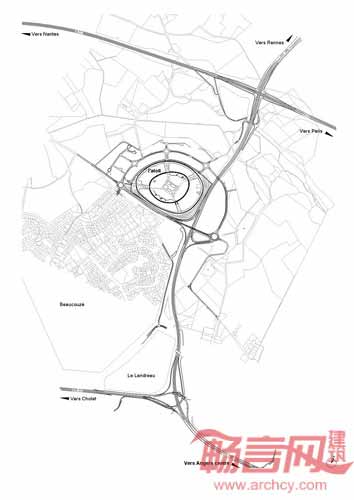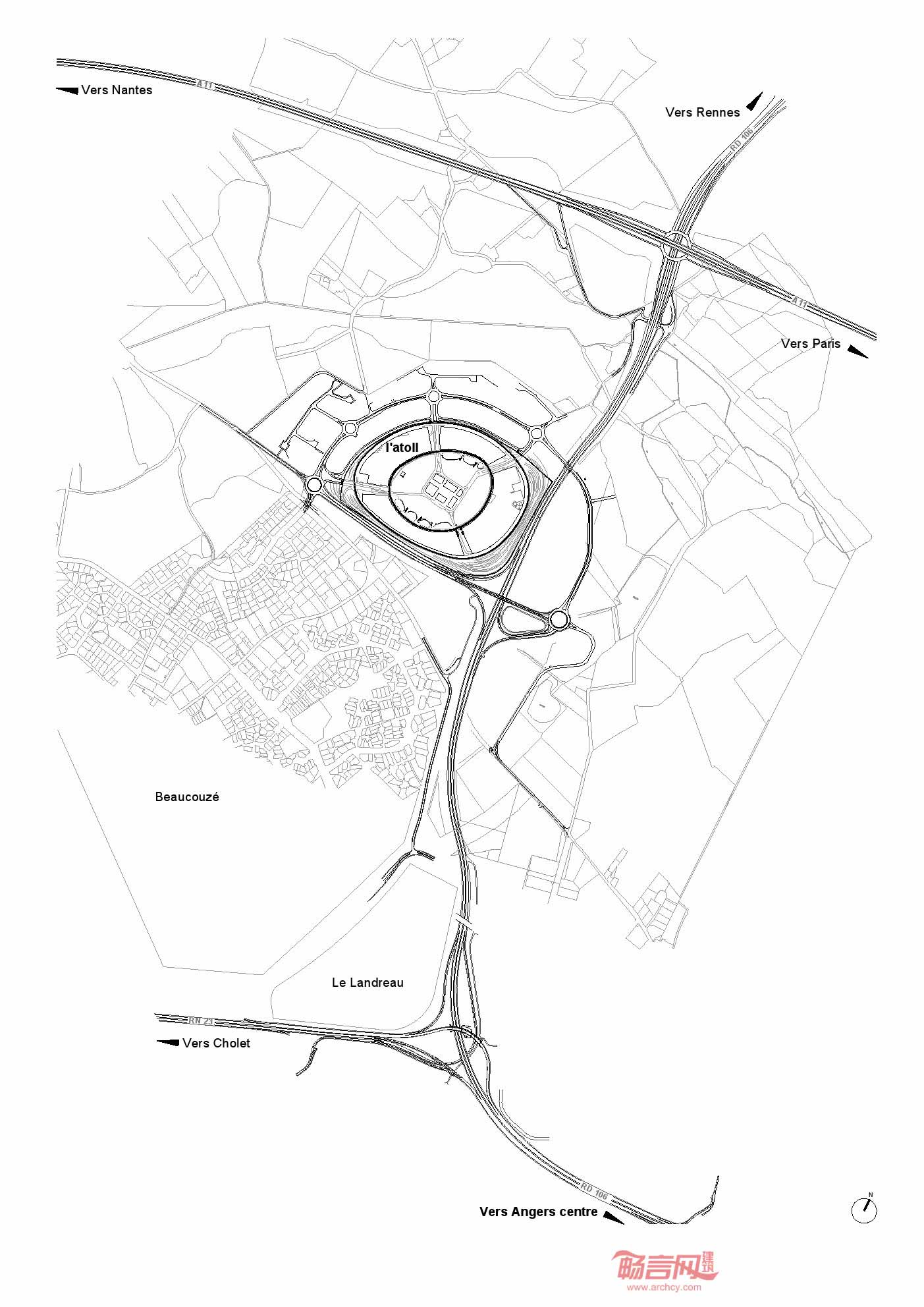 法国昂热环礁购物中心由Antonio Virga及AAVP两家建筑设计公司联合设计。建筑具有四根被走廊隔开的立柱,形成了壮观的入口连廊。建筑外皮覆盖了白色的铝质网格,内部店铺运用了活泼的布局方式,而停车库融入了花园环境中。