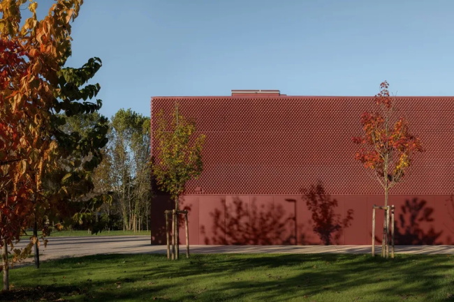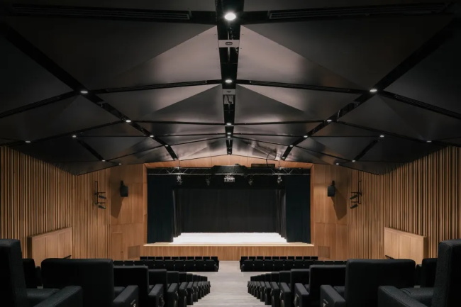 建筑坐落于城市与乡村的交界地带,在室内与室外之间实现了一种精致的平衡。大尺度开口与被精心框取的景观视野强化了建筑与周边公园之间的连续性,而入口空间的序列则引导访客穿行于压缩与舒展交替的空间之中,形成一段富有情绪张力的体验路径,最终在主厅中豁然展开,完整呈现出剧场空间的恢弘尺度。