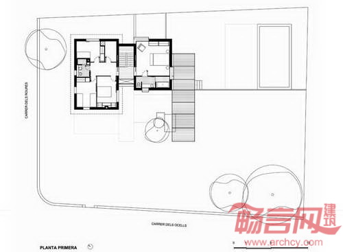 项目位于巴塞罗那北部一小时车程的Sant Esteve de Palautordera,包含现有度假住宅和增建结构。现有住宅完工后增建建筑使房屋面积翻番。因此,设计师将项目设计理念形容为“舞伴”,在同一首“舞曲”中,不同部分扮演着各自的角色。原有项目结构简单,在此基础上增加了门廊和走廊。项目拆除了这些增建设施,保留所谓的住宅原型——带有白墙和方窗的简单的坡屋面房屋。新的增建建筑具有同样简单的结构,其宽度与现有房屋相仿,高度略低。新旧建筑在材料、施工工艺方面有相似之处,但不完全相同,各具特点的两座建筑共同构成整体。