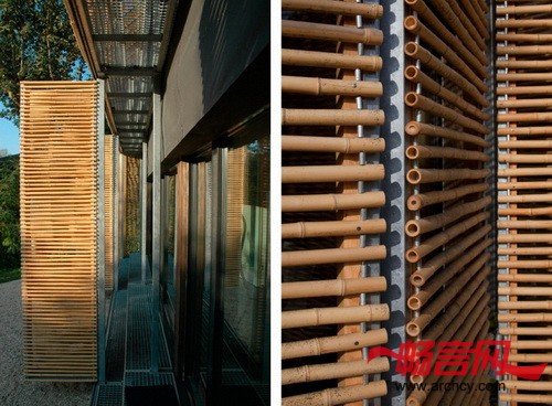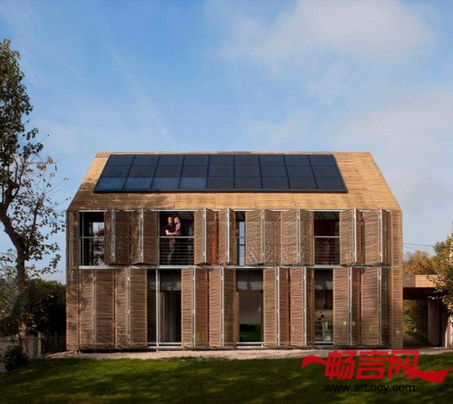 项目描述:住宅的第二层外墙用坚固的木板做成,它围住了整个建筑的结构。在外墙上面有几个用竹子做成的大扇窗户。竹子的颜色会随着时间慢慢变暗,这是从Ile-de-France地区的传统谷仓中获得灵感设计的。它从住宅前面的窗户一直向北面穿过去,直到屋顶的展开处结束。竖直方向的竹子百叶窗以大扇凸窗的形式安装在建筑的南面,这既保证了阳光的充足,又能遮阴。屋顶的光伏电池板完成了住宅的整体功能设计,它每年的发电量为3200千瓦。地基是住宅里唯一使用混凝土的地方;整个建筑结构用大型的实木板组装而成,它们是在车间里预先定制的。