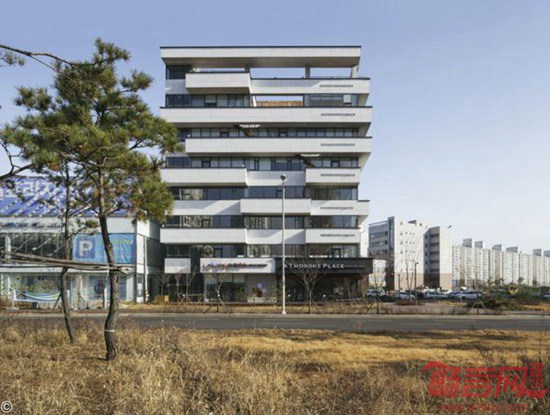 WISE建筑事务所设计了位于韩国京畿道的Kimsclini公寓楼。项目坐落于金浦新城一片社区住宅之中,将用于社区医院和其他商务设施的配套住宅,设计目标是满足建筑空旷区域的开放式空间条件。设计师希望将Modam山自然环境、鸟类生态公园和汉江景观带到项目之中。考虑到容积率,项目团队运用绿化空间将建筑室内外区域联系起来,并营造出露台空间。