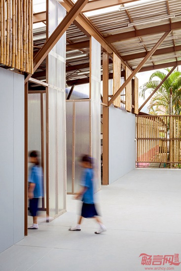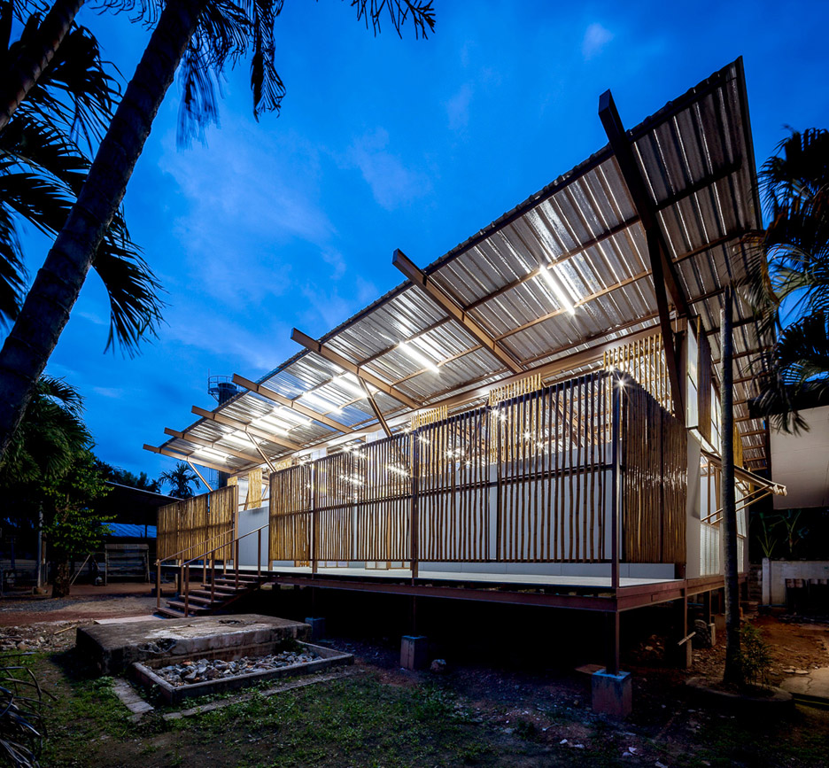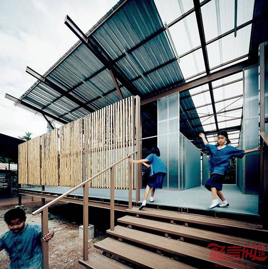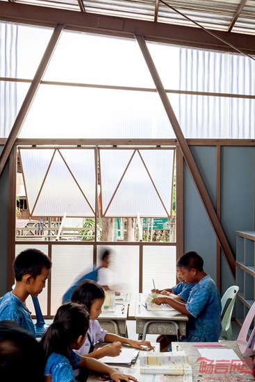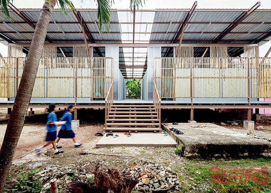 建筑师Jun Sekino设计了位于泰国北部的抗震小学。项目是在强烈地震摧毁当地一所小学后建造的。Chiang Rai省在2014年5月遭受地震袭击,毁坏了73个学校,让2000多名学生失去校舍。为此,D4D慈善组织发起了一个计划,在地震破坏最大的区域建造九个小学。Jun Sekino是九个受邀进行设计的公司之一,完成了Baan Nhong Bua小学,为五到十岁的孩子提供临时教育设施。