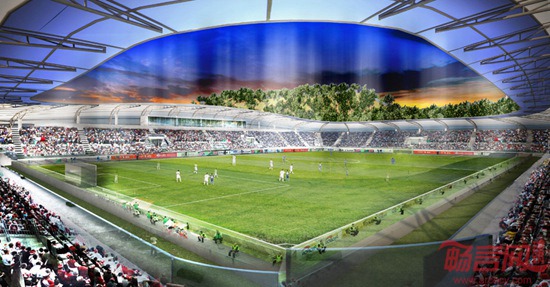 建筑师Massimo Guidotti设计了意大利阿斯科利球场。阿斯科利足球俱乐部成立于1898年,球场将成为其主场。球场占据了一块工业场地,建成后将比之前的结构更为紧凑。设计方案去除了田径跑道,因此看台距离球场仅有7.5米距离。由于南北方向的高差,设计师将方案分成两部分。一部分与街道齐平,包含商业和零售空间。另一部分是球场本身,比街道略高。