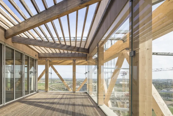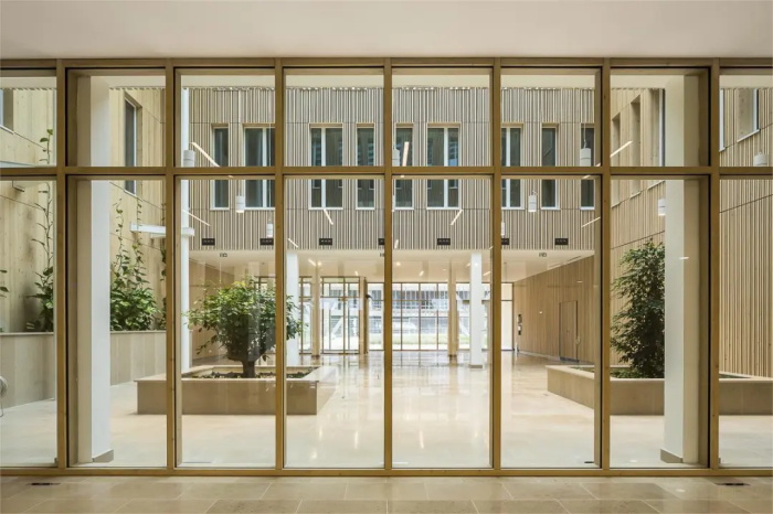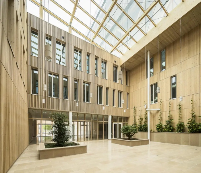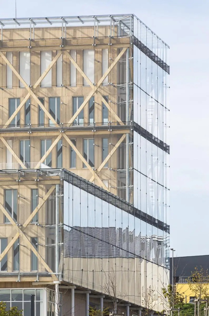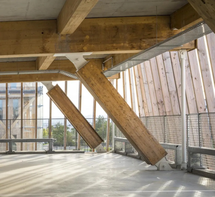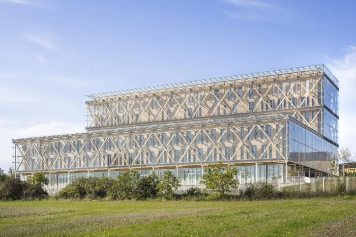 这座外覆木构的建筑,设计灵感源自第戎历史中心的半木结构房屋。半木结构即构成墙体框架的梁系,这一木构框架由木段组成,梁间界定出填充区域。在法国建筑史上,半木结构房屋历经数世纪传承。这种以小型木构件为特色的建造方法,凸显了地方资源的合理利用。直至第一次世界大战,众多木匠及其技艺在战壕中流失,加之钢筋混凝土的引入,这一建造方法的发展才告停滞。这座大型建筑旨在彰显法国传统木工技艺的传承与材料的合理运用。