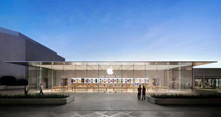 Bohlin Cywinski Jackson工作室设计了美国加州Palo Alto的斯坦福苹果店。苹果一直以来都注重设计的力量,无论是对于顾客掌上产品设计,还是对于商品陈列艺术。项目坐落于Palo Alto购物中心,商店体现了品牌的期望,将其13年来的探索进行了再度诠释。商店设有三面入口,180英尺的店面玻璃墙,是苹果不多见的如此醒目和直接的陈设。