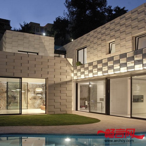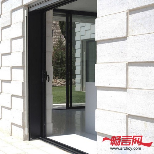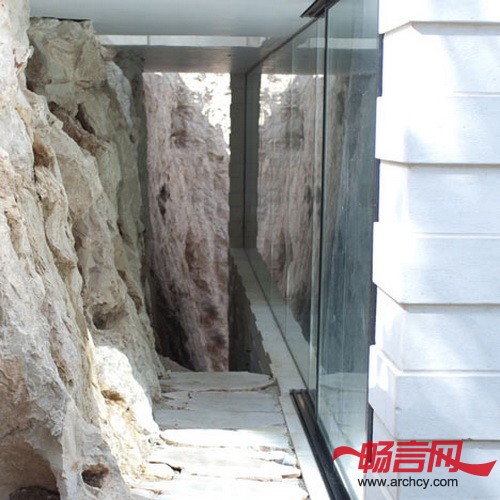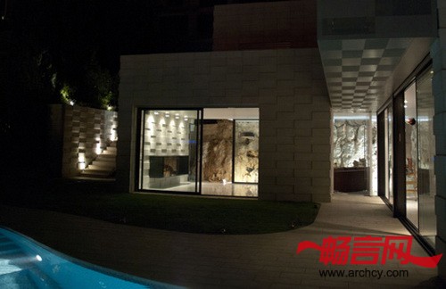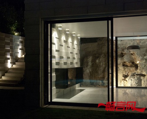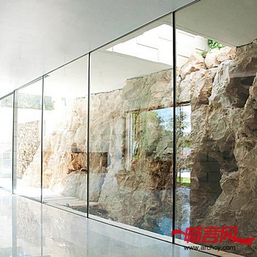 这座住宅位于耶路撒冷,从它的玻璃墙就可以看到外面光凸凸峭壁。