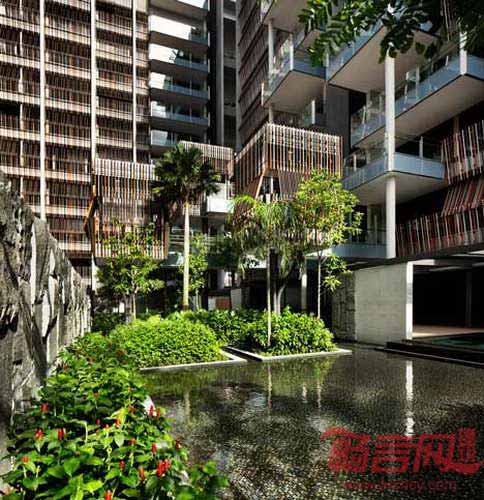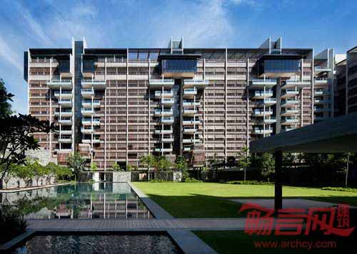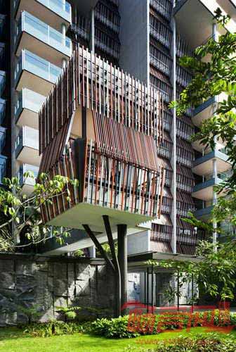 WOHA建筑事务所设计了新加坡Goodwood公寓,公寓位于树干形桩基之上,为住户提供了户外空间。项目包含210套公寓,围绕中央庭院而设,浓密的绿化植创造了公寓同Goodwood山之间的视觉联系。设计师透露,“我们设计了两座L型12层住宅楼,占地2.5公顷,与附近小山构成对话,通过不同尺度和私密性处理,营造空旷连续的设计语言。”一条林荫道从小区入口通向院落,公寓围绕庭院,附有泳池、会所和草坪。