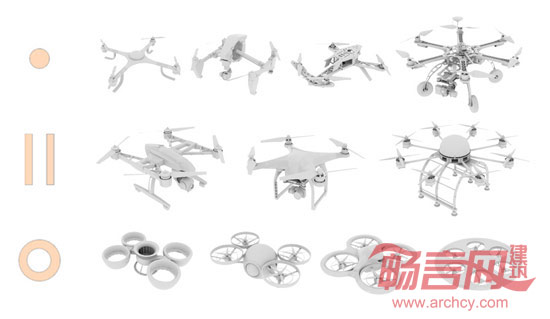 大楼的外立面模块设计比较多样化,根据无人机形状和起落装置的大小,可以容纳9种不同的无人机。