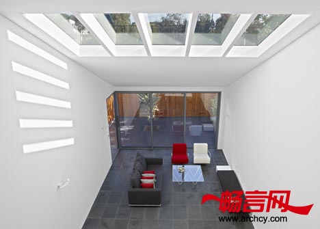 洋房位于一个40米长的狭长土地上,它只有6米宽,但是别致的是,这座洋房的幕墙和屋顶全是由来自Rheinzink.的锌钛混合材料包装而成的。