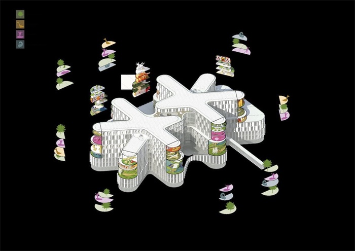 项目由两个星号形状的体积组成,形象类似一双宽厚的手掌连接在一起,单个“手指”内部的隔间由顶部的冬季花园隔开,共享为家庭休息区保留的中央核心。跨度在7到20米之间。