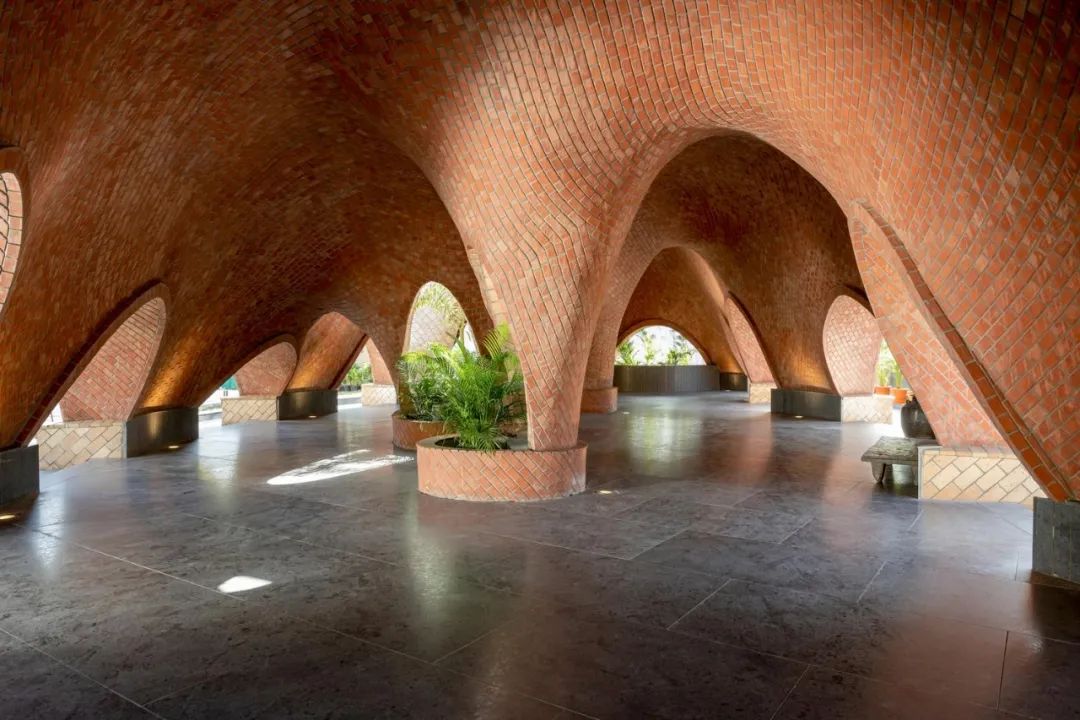 “TARANG” 营造了一个永恒的环境,促进不同时代之间的意义对话。其设计唤起了一种超越当下的延续性及联系感,鼓励跨越时间的对话。Tarang的设计考虑到了西南地区的特定环境,并采用了卓越的施工技术,向我们展示了一种创新和缜密的方法来解决可持续建筑的紧迫挑战,打造了一个生态友好、文化丰富、视觉迷人的建筑环境。通过采用无软件或数字工具的传统建筑技术,Tarang颂扬工人的艺术性才能。