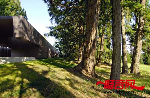 它是一座单层高的现代住宅,坐落于盐泉岛上一个16英亩的庄园内。盐泉岛位于温哥华岛和大不列颠哥伦比亚省大陆之间的佐治亚海峡上。