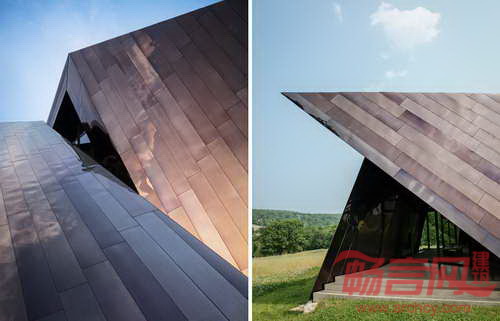 建筑表皮由镜面型铜质板材组成,与周边景致色彩和谐一致,同时显眼卓著。