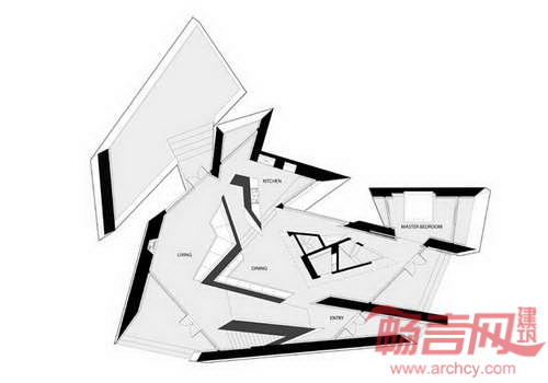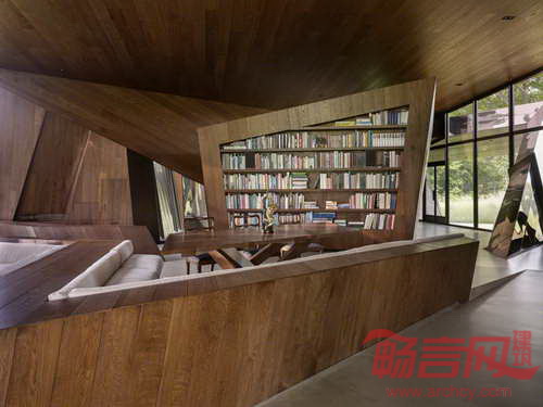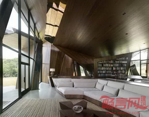 住宅面积达2000平方英尺,设计师将其构想成由18个面、36个点、54条线构成的回环形结构。