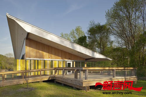 美国核桃溪市湿地保护中心是一个697平米的旅游中心,它是毗邻市市中心,是位于该市东南部的一块202 343平方米被滥用、污染的湿地改造项目的一部分,这块湿地将被开发成为一个城市宜居和自然资源丰富的保护中心。通过恢复利用这块湿地,该保护中心能够提高公众对这块城市湿地的重视和保护,让市民以这个天然湿地为傲,同时促进这个城市湿地地区的经济发展。中心还提供一个“静逸区”,这样既促进了游客与自然的交流,又能保留湿地的自然美景,既能保护湿地物种的天然栖息地,又能使游客的心情愉悦。