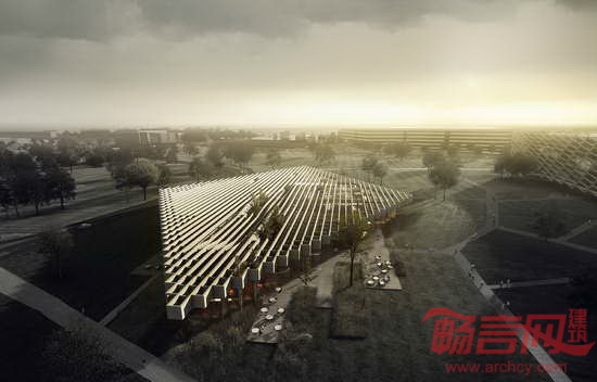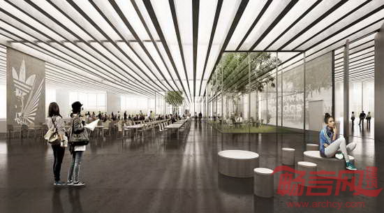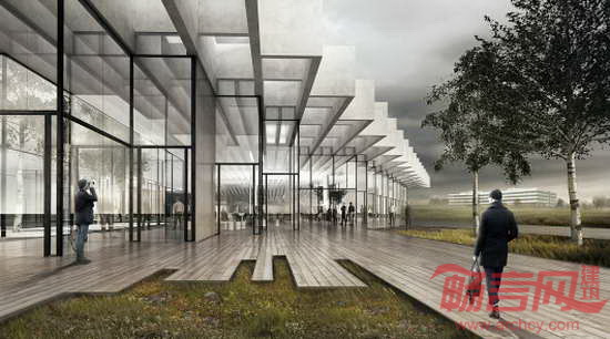 体育用品巨头阿迪达斯公司宣布将在其位于德国Herzogenaurach的总部建设一个“聚会&美食”(Meet & Eat)会议中心。丹麦COBE设计公司击败REX公司、扎哈·哈迪德公司等29个竞争对手,中标该项目。项目面积为1.1万平米,具有开放、清晰的设计方案,融入了周边的自然景观。室内设计带有阿迪达斯标志,建筑屋面造型体现了品牌经典的条状特征。预计中心将于2018年开放。