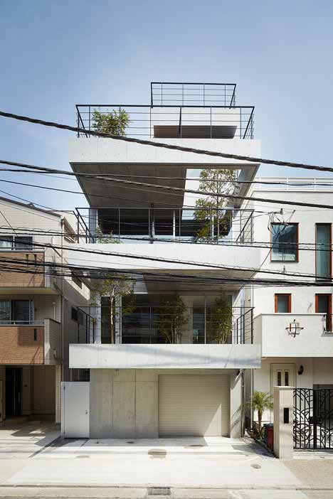 日本建筑师松井亮设计的东京混凝土住宅带有种植树木的伸出的阳台。项目被称作“阳台住宅”,四层住所的三个大阳台和屋顶露台为住户提供欣赏风景的视野,栽种的树木还成为遮蔽视线的屏障。设计师表示,“两米宽的阳台起到了阻挡路面影响的缓冲作用,如同屋檐的功能。我们主张赋予阳台积极的影响力——阳台不仅对室内有益,还能成为城市景观的一部分。”