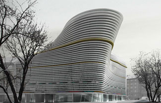 该项目设计采用裙楼和塔楼的二分设计法。外立面呈现出雕塑感、绸缎般的几何形态,营造出节奏的律动。建筑的弧线和变化为观者提供多变的视野。通过白色光亮的围合体系,动态的光影效果凸显了建筑的”城市雕塑性质“。