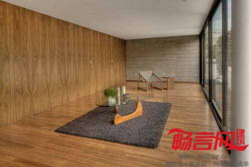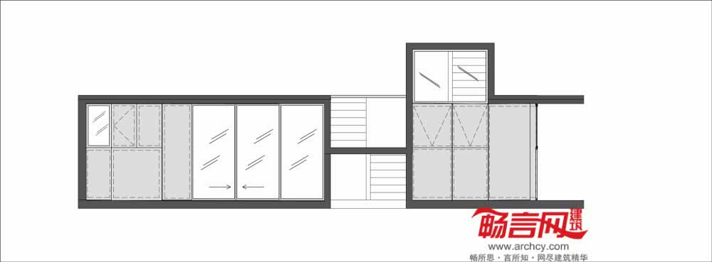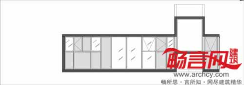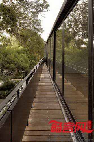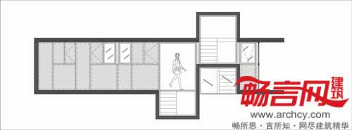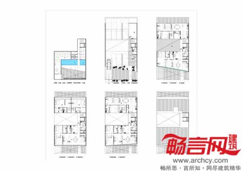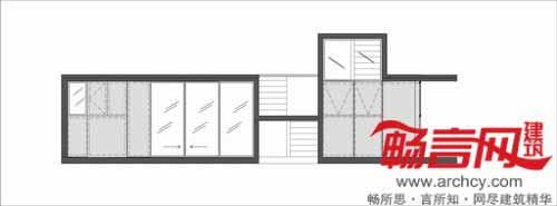 第二单元公寓围绕庭院而建,在二层交错排布;通过透明和磨砂玻璃的运用,将室内空间的设计展露出来。