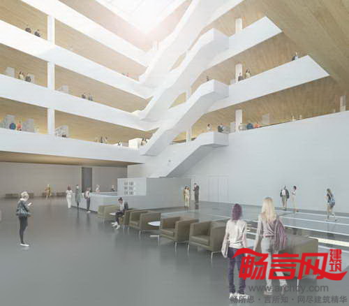 斯洛文尼亚卢布尔雅那国家图书馆设计方案由Kalamar工作室提供,设计将图书馆与广场城市表层结构完美地结合起来。设计师模拟周围环境的喧嚣活力进行了建筑量感设计,而中庭的设置使城市活力过渡到宁静的读书氛围。项目分为四部分——能够自由出入的图书馆,储藏室和档案馆,工作楼以及Emona考古遗产。