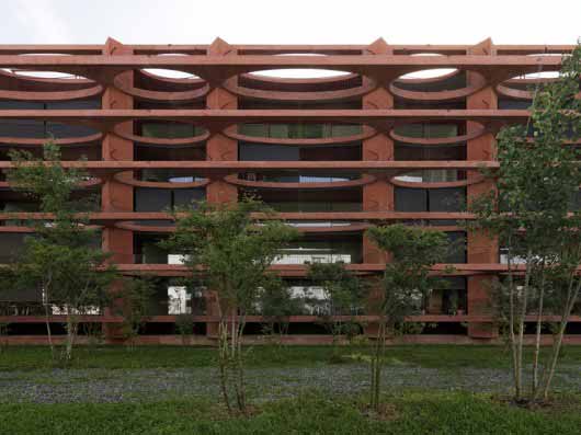 项目位于瑞士Zug,由Valerio Olgiati建筑事务所设计。从远处看,项目如同一个四周镶有装饰物的飞毯。椭圆形的入口为住户创造了距离感,使得邻居看不到彼此的住所。这种独特设计还使住户感到生活在住宅中央的错觉。随着视角和太阳位置的变化,人对空间的感知也会改变。公寓布局包括西侧的起居室以及东侧的工作区和卧室,而浴室和衣帽间位于中央。空间角度上,阳台构成起居室的延伸,椭圆开口凸显了这一概念。