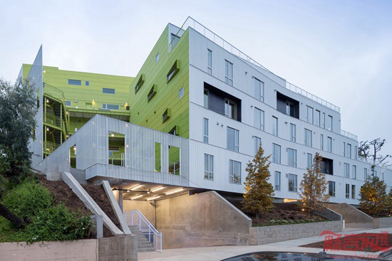 LOHA建筑事务所完成了位于洛杉矶的楔形学生公寓项目。项目名为SL11024,坐落在洛杉矶加州大学校园旁边的维斯特伍德街区。项目面积为5100平米,为学生和教职员工提供宿舍。建筑涵盖31个住宅单元、健身中心、瑜伽会馆、商业中心和休息室。项目对面是诺依特拉设计的、于1937年建成的Strathmore公寓。洛杉矶市在1980年代将该项目指定城历史文化纪念建筑。