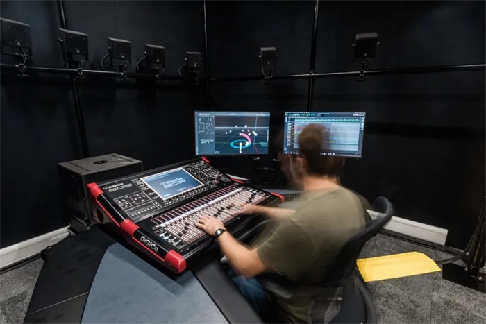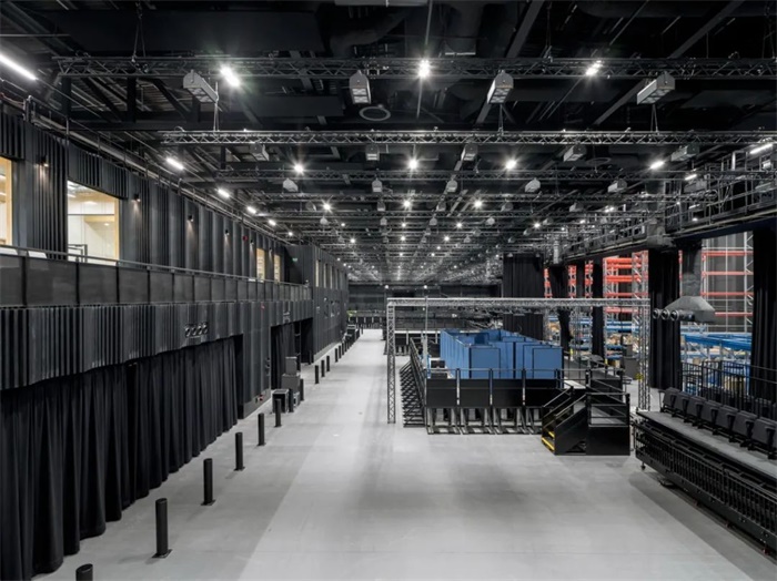 该实验空间的总面积约为 4,000 平方米,体积为 44,000 立方米,高 10 米,以及设计了 40 米结构净跨度,可容纳大量不同的研究实验。实验室还配备了室内音乐环境和音响系统,可测试空间、颜色、灯光、气味、能见度、外观、触觉和声音等环境条件对人的行为和感知的影响,使实验条件尽可能接近真实场景。实验室内部是黑色的,背景声级和混响非常低,这是建筑设计的核心部分,旨在消除人们“身处建筑中”的感觉。