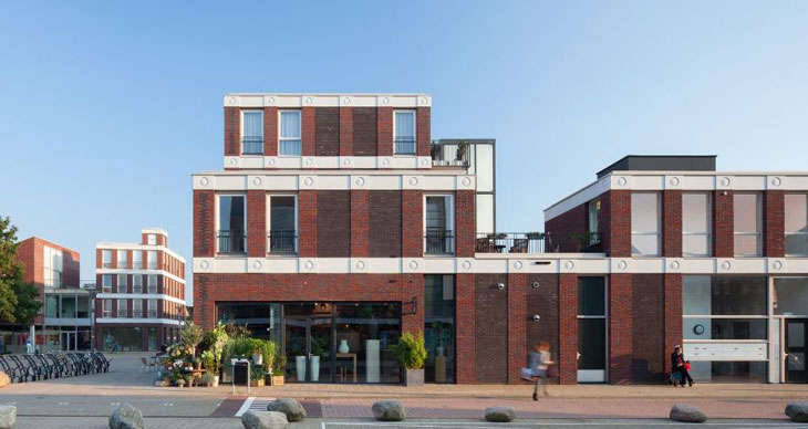 Attika工作室设计了荷兰Amersfoort的Emoticon Facade建筑。项目位于Vathorst镇现有的景观绿化带边,带有多种活跃的功能,涵盖图书馆,剧场,学校,商店,公寓。项目周边有一棵树龄达150年的老橡树。项目包含两座紧邻建筑,在细部上各有不同。