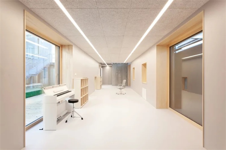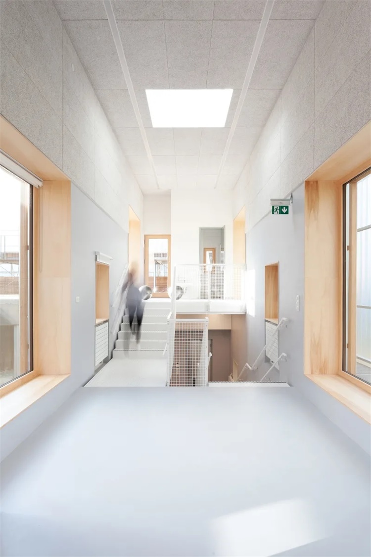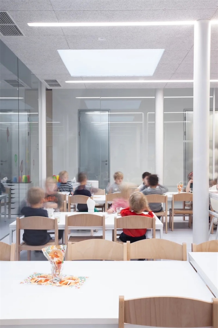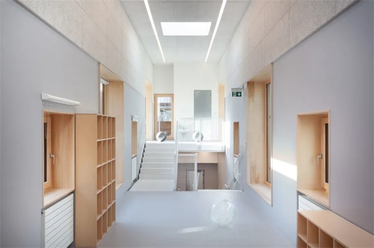 设计师希望孩子们通过各种特殊结构来学习和感知建筑,试图在空间构图中实现这些结构。根据构想,孩子们能逐渐发现整座建筑,并在进屋后立即调整自己的方位。