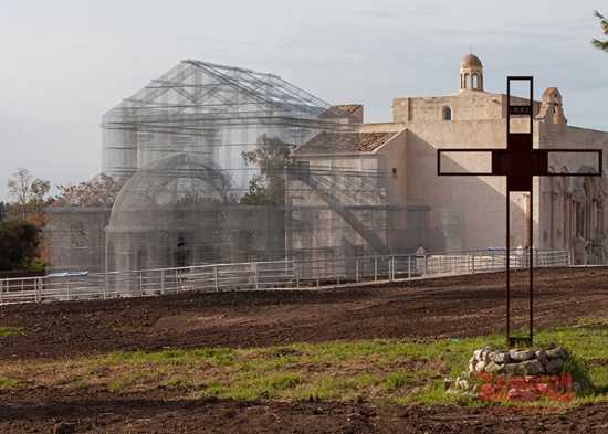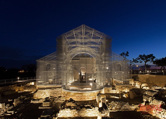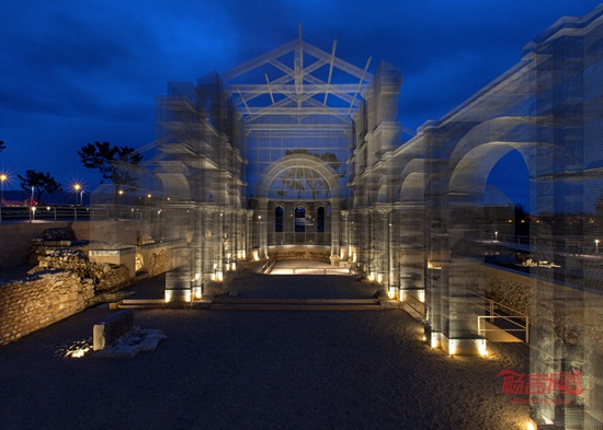 意大利艺术家Edoardo Tresoldi以铁丝为材料在意大利南部港口小镇Siponto的一处考古场地复建了一座早期的基督教堂。