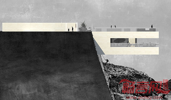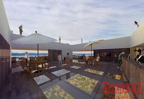 主体混凝土结构嵌入崖壁,由下方隐藏的钢梁支撑。建筑结构尽可能的简单化,而且只采用了一种与岩石相关的主要建筑材料——混凝土,为餐厅营造了当地的历史感。