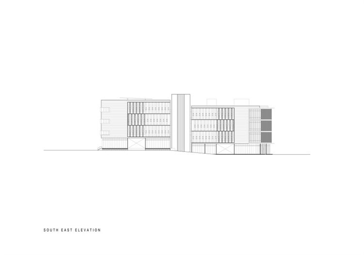 该工厂车间均为六米层高,为了实现最短的车辆坡道长度,工厂分为两翼,分段消化三米高度,设置中央匝道进行消化高度差异,并集成到循环的车道上,以此减少循环区域和优化实用面积效率。
