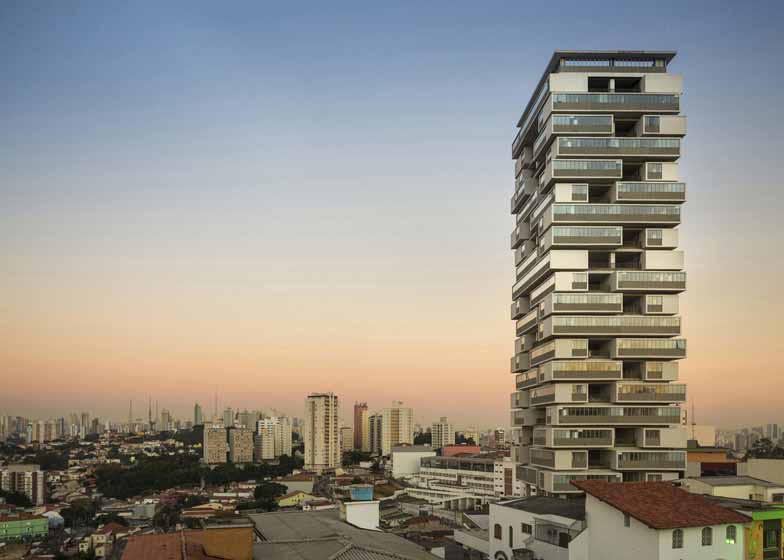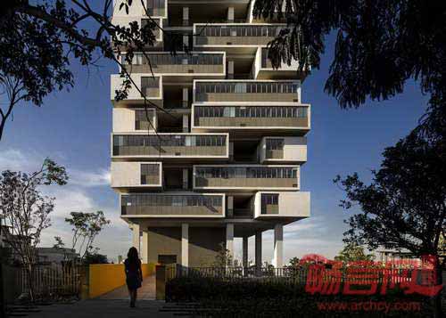 巴西建筑师Isay Weinfeld设计了一栋位于圣保罗的公寓楼,项目被称为“62套带院子的住房”,相互堆叠的公寓形成了如同Jenga层层叠积木游戏中的形态。360º住宅大楼设计在本月早些时候举行的世界建筑节中进行了展示,建筑一共20层,位于城市西侧两个街区交界处的一座山顶上。巴西圣保罗当地紧凑型公寓往往缺乏室外空间,设计师希望在该项目中避免这种现象。设计师表示,“我们希望将‘360º住宅大楼’塑造成有别于多户住宅高楼典型的特例,通常情况下,住宅楼只是公寓单元简单的堆砌。”设计师不是只添加狭小的阳台,而是赋予每套公寓各自的露台。这些露台位于公寓之间,提供了具有私密性的空间。公寓面积介于130至250平米之间,每层的公寓数量是2至5套。