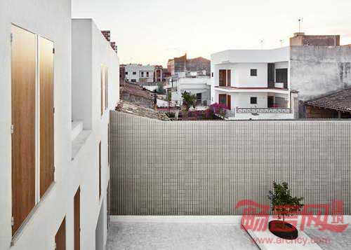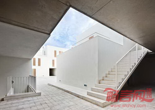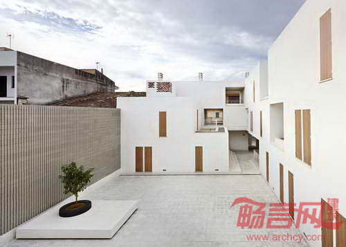 RipollTizon建筑事务所设计了位于西班牙马洛卡的Sa Pobla社会住房,具有相同门窗的白色建筑围绕庭院设置。项目坐落于小镇的外围,建筑仅有三层,共包含19套住宅,分别是普通公寓和复式公寓。建筑的百叶窗和房门都添加了相同的木涂饰层,旨在形成与当地其他住宅类似的外观。
