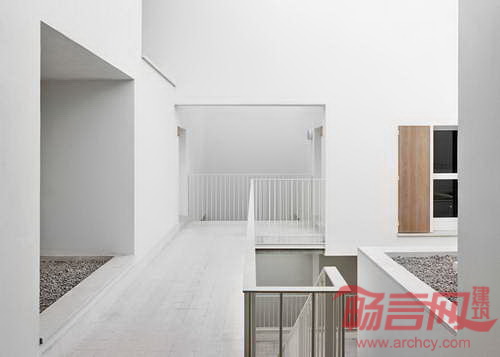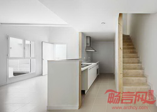 设计师表示,“百叶窗的布局和活动由住户控制,构成了一组反映建筑使用状况的变换无穷的图像。”项目的其他区域材料保持了简约、低调的风格,配合白色抹灰墙面和暴露的混凝土表面。建筑外立面的白色涂饰层与综合体保持了连贯统一。