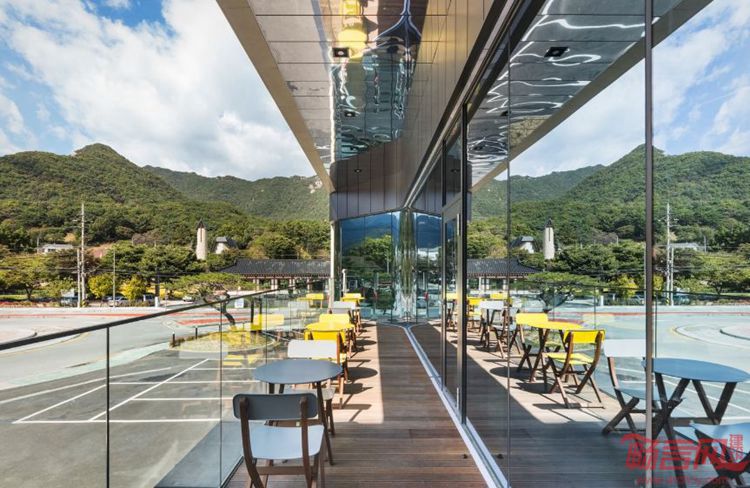 JOHO工作室设计了位于韩国忠清南道的波浪石头住宅。项目面积1068平米,于2015年完工。这座混合设施包含住宅和餐饮双重功能,坐落于韩国名山Keryong山中。四周都是山地,360度被山景围合。这一景观特点是设计灵感的主要来源,设计师希望将美丽的山景转变到商业项目中,并使项目成为国家公园的新象征。